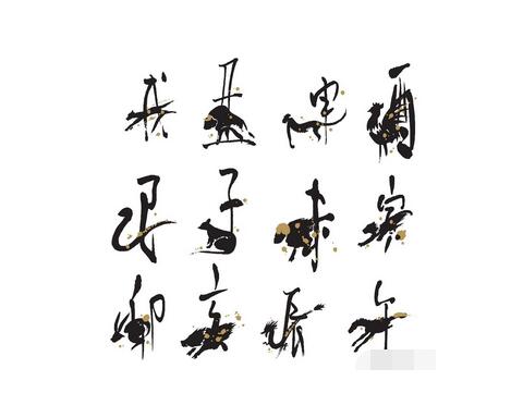表示十二时辰的十二个字与十二生肖相结合,便有了:子鼠、丑牛、寅虎、卯兔、辰龙、巳蛇、午马、未羊、申猴、酉鸡、戌狗、亥猪。