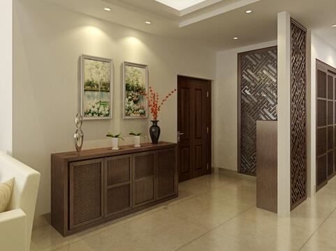 在玄关处摆放的家具要以不影响主人的出入为原则。如果居室面积偏小,可以利用低柜、鞋柜等家具扩大储物空间。还可通过改装家具来达到一举两得的效果,如把落地式家具改成悬挂的陈列架,或把低柜做成敞开式挂衣柜,增加实用性的同时又节省了空间。