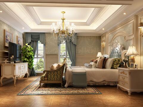 在大面积的镜子中,挂了一面园形的镜子,乍一看就像一滴水在水面上激起的涟漪,仿佛能听到水的流动。拥有了明黄色灯罩的两盏台灯现代感十足,明黄色又是中式文化的主流色彩,虽是中西合璧,但风格特征并不明显,反而达到了高度的统一。