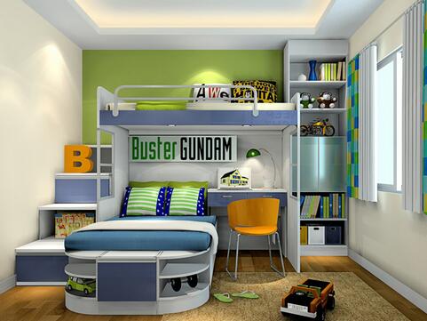 儿童房是儿童私有的空间,要令儿童健康成长且能够独立,减少依赖性,则在房间里面可设有一张小桌子或小储柜等,让他们自由组织内部的物品,培养他们的动手能力,作家长的不要去干预,但要切记家具尽量多用圆形,忌用玻璃制品,避免尖角和降低磕碰的危险。并且教导他们玩耍后能够立即将玩具等物品自己收拾好,培养有始有终的习惯。