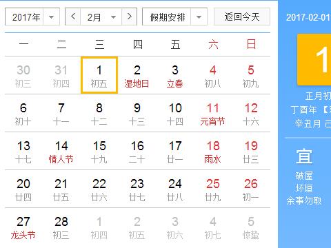 2017年02月13日 农历01月17日 星期一 冲牛(乙丑)煞西 水瓶座