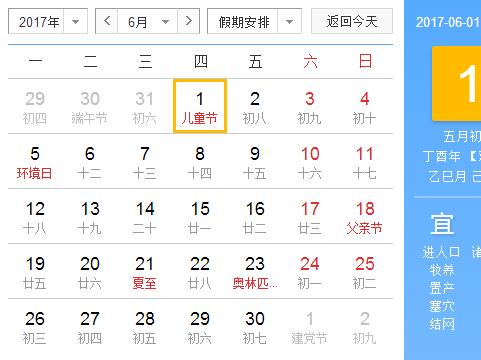 2017年6月每日财神方位查询
