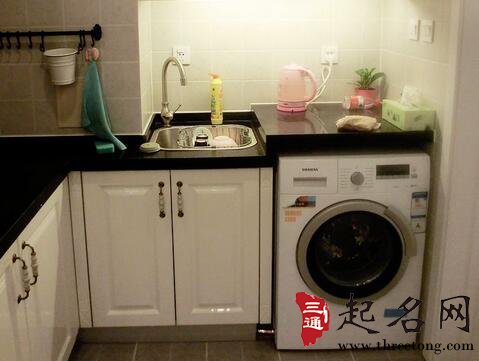 如果洗衣机要选择置于厨房,那就要留意在洗衣机的顶部切勿摆放任何与煮食有关的小型电器,包括微波炉、热水壶及电饭煲等。一般厨房后面还有间阳台摆放洗衣机是个不错的选择,这样合理利用厨房空间,再加上洗衣机五行属火土,土克水,土耗火。而厨房五行属火,形成火土相生局,摆放在厨房也是不错的选择。