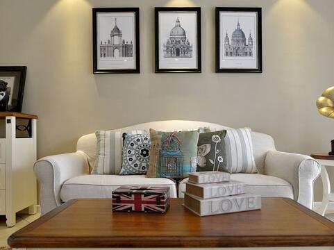 3、沙发背后的墙上可贴上一副壁画或则其他的带有吉祥如意的字画