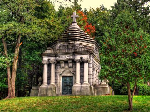墓地选址之要在利于聚气。人死后气失其本,风吹易散,故首忌风漏之地。由此,凡环抱之势皆利于聚气。