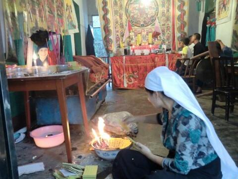 2、活着的人害怕灵魂在回家的路上迷路,所以会点一盏灯,放在去世的人的遗体旁边(接下来解释古代的人会把去世的亲人的尸体放在家里的客厅里,而不是殡仪馆的停尸房;还有古代人点油灯,而不是电灯的问题)。活着的人害怕灯熄灭了,而使去世的亲人找不到家,于是他们就彻夜坐在停放尸体的房间,保证那盏指路灯是一直燃烧的。守夜七天。