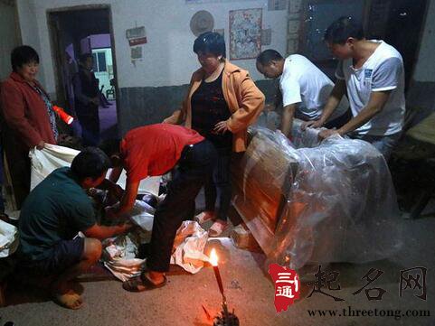 停尸仪式 他被移到正屋明间的灵床上,在亲属们的守护下度过生命中最后的时刻,这叫做"挺丧"。