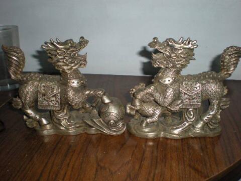 麒麟以金制的最好,金麒麟力量最双,但是价格太贵了,一般都是以铜代替。 因铜制品不易破碎而且也利于化五黄。麒麟种类很多:有送子麒麟、有吐书麒麟、有踏球麒麟、有金钱麒麟、有驮宝麒麟。有大有小,因此根据空间的大小及用途,摆放不同的型号,效果最佳。