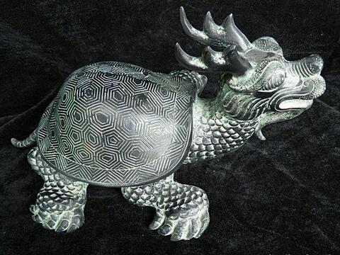 龙龟,相传为古代神龙所生之子,背负河图洛书,揭显天地之数,物一太极,上通天文,下知地理,中和人世。龙龟是龙神和灵龟的化身。