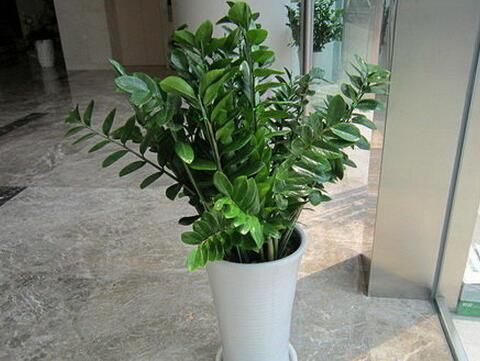 3、金钱树放在办公室里。金钱树植株新抽的羽状复叶有“龙凤木”的别称,十分奇特。复叶上的椭圆形或卵圆形小叶,质地厚实,浓绿可爱。如果将数株合栽于一个精致的青花瓷盆中,就会给人一种蓬勃向上、葱翠欲滴的感觉。最适合摆放办公桌上,适合开幕、升迁,预示着给你带来滚滚财运。同时,金钱树调节湿气的功能还能在办公室发挥作用。开着空调的办公室有着几盆金钱树会变得更健康。