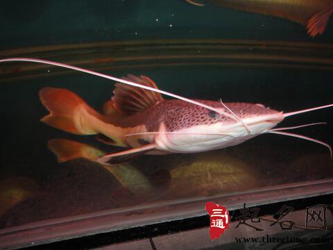 招财猫鱼,学名红尾鲶,鱼体长达1米,头、背、胸、腹部扁平且阔,臀、尾部较侧扁且窄。红尾鲶体呈长桶型,尾部成圆铲状,头部较大,嘴宽扁,有三对触须。体下半部均为白色,背部与头部为灰黑色。并有深色斑点。背鳍与尾鳍呈橘红或血红色。