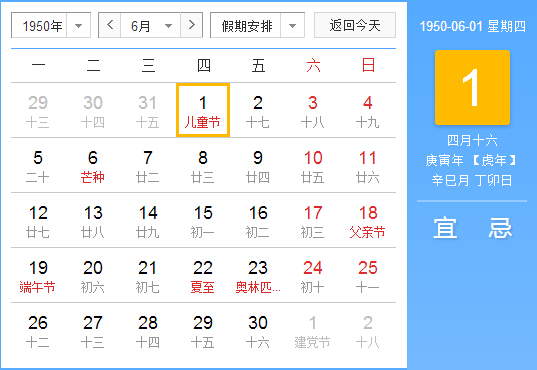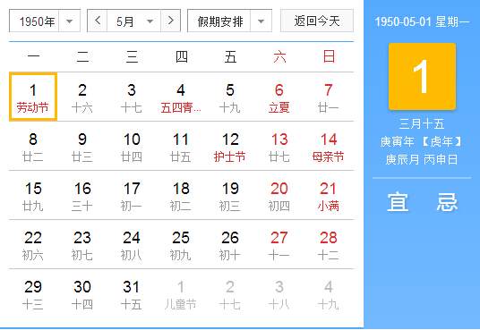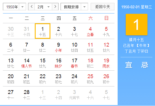 1950年春节是什么时候:1950年2月17日 星期四 农历 正月初一
