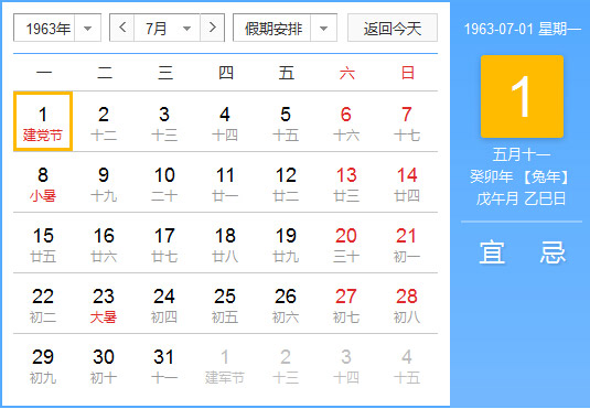 1963年7月 农历癸卯(兔)年己未月 建国14年
