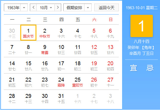 1963年10月 农历癸卯(兔)年壬戌月 建国14年