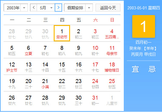 2003年5月 农历癸未(羊)年丙辰月 建国54年