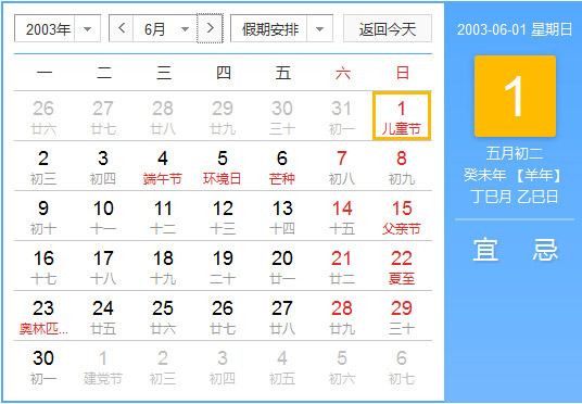 2003年6月 农历癸未(羊)年丁巳月 建国54年