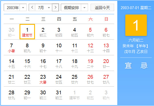 2003年7月 农历癸未(羊)年戊午月 建国54年