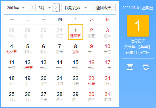 2003年8月 农历癸未(羊)年己未月 建国54年