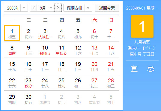 2003年9月 农历癸未(羊)年庚申月 建国54年