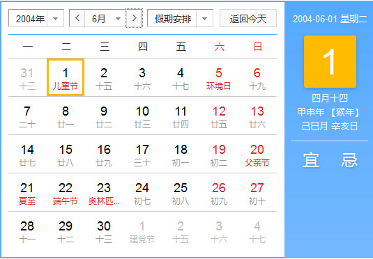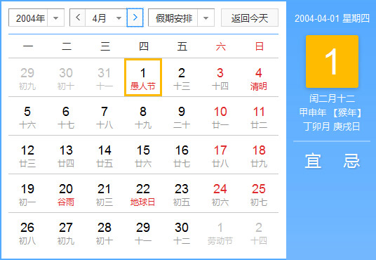 2004年农历表文字详解