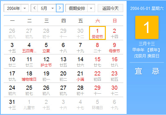 2004年5月 农历甲申(猴)年戊辰月 建国55年