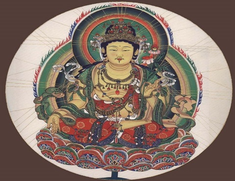 虚空藏菩萨系密教胎藏界曼荼罗虚空藏院之主尊、现图胎藏曼荼罗释迦院之释迦右方胁侍、