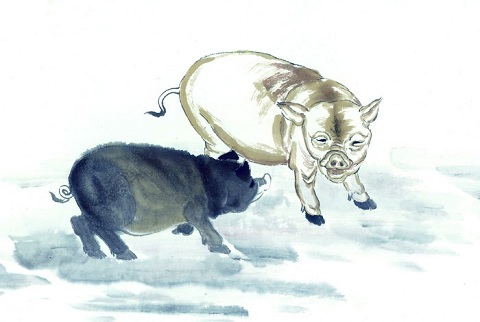 属猪人最配属羊,兔,虎大吉五事其昌,安富尊荣,子孙健壮,积财多福。