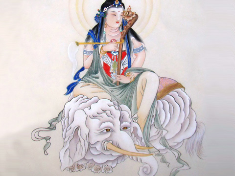 普贤菩萨是大乘佛教四大菩萨之一,全名为「三曼多跋陀罗」,象征德行,又称「大行普贤菩萨」。