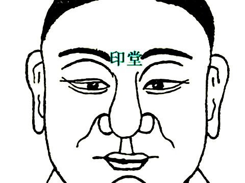印堂,位于前额部两眉头间,是人体几条重大经络的汇集处,正处足阳明胃经上,与胃关系密切。若印堂颜色暗沉、凹陷、有青筋,则说明脾胃虚寒,需要调理。同时印堂发黑表明心脑方面出现问题,健康人的印堂的颜色应以红色为主,因为心主“火”,若印堂发黑,则反映出人体心力不足、供血不畅、失眠多梦、易疲惫等症状。