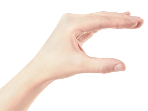 形:掌中沿拇指和食指中间、食指和中指中间、小指和无名指中间向下有三道竖纹。