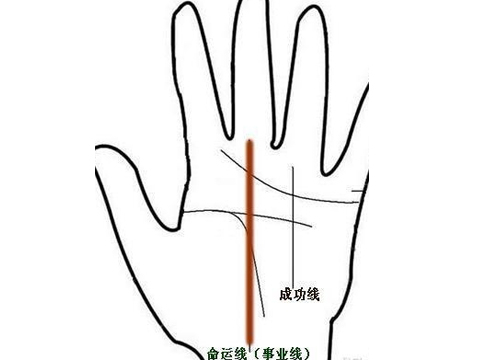 命运线有人叫它作事业线、成功线,古代手相学上叫它玉柱线;原因是它跟一个人的事业有一定的关系。所以有人也叫它作幸运线;理由是它象征一个人的成败、祸福。也有人叫它作宿命线;因为它能表示一个人一生的遭遇,其实叫它事业线、成功线、幸运线、宿命线玉柱线都不对,它们只能代表这条线状的一部分含义;只有叫它作命运线,才能把它所代表意义充分揭出,所以新手相学家就叫它作命运线。这条线位于手掌的中心,而成一条垂直线。它起端较杂,大体来说可分五种:有的起于生命线。有的起于手颈线。有的起于月丘。有的起于头脑线。有的起于感情线。除此以外,较特殊的起端不是没有,正因为太特殊,便把它归到变态命运线项下研究,不将它当作正常命运线看待了。但这条线总体的走向是朝着食指的方向。看这条线并通过观察这条线的颜色是很可能可能正确地回答一个人目前运气状况。命运线是看命运的运转和强弱,但是配合成功线来看命运的结果。因此,即使命运很好,但若是成功线不好的话,也无法得到好的结果。