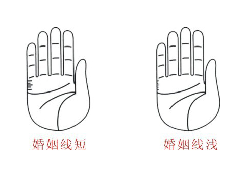 婚姻线很短,表示对异性的情爱无法激起荡意或是无心实现婚约。再若短且浅者,则表示谈恋爱不会很深入。