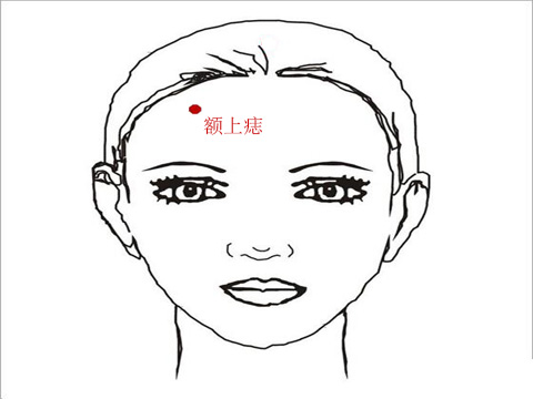 运气一般,与亲人之间的缘份较浅,离家在外的机会很多,也很难受到长辈上司的援助,提拔,生活也较艰苦。不过,如果长在额头中央上方,那么说明其人心智成熟,晚年生活较安定幸福。若是女性拥有额上痣,则财运较佳,但是在感情上容易有挫折。所以在选择终身伴侣时,必须仔细地观察对方的一切言行举止。如果痣的型很好,则表示在运势上拥有良好的环境与基础,成功的可能性颇大。