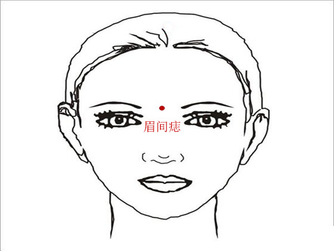 男人印堂有痣,呼吸器官弱,易有三角关系(双龙抢珠,两男一女)。