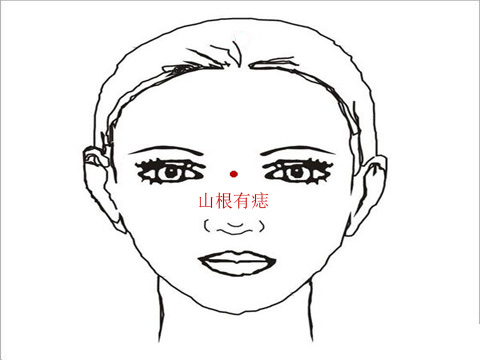 男人山根有痣,女夫运不佳,再婚之相,易罹胃肠,痔疮病症。