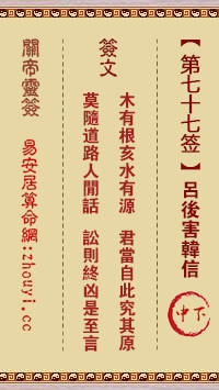 树木必须扎下深根,才能稳稳地树立,潺潺的流水也要有个源头,河流才能源源不绝,这是天地万物不变的道理,必须自己探究其原因,去恶从善则能趋吉避凶,为人仁慈则能长寿。千万不要道听途说,傍人在耳边劝说,似乎是有道理,其实都是巧言令色,如因此而涉诉讼,则有厄运,千万要记得,不可涉及讼事,关起耳朵,不要听别人的小道消息,从根源修德行善,才是最根本的道理。