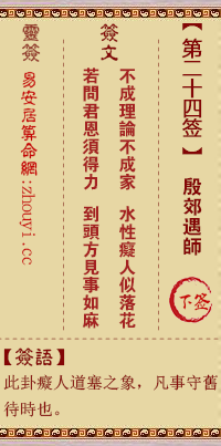 此签意味,若想要把事情弄成,一些基本条件不可少。但是人性往往庸碌,不得要领,因此谋求不能得力,而且还把事情弄得乱纷纷。
