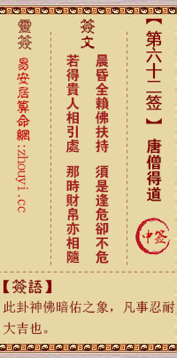 本签示意,虽然事情可能逢遇困境,若临此刻,则须安守,莫轻举妄动。或能得到贵人或守护神的安排,而走出困境,而得光明的新生活。