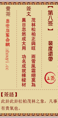 此签以栽培古松来形容这谋望。意即,这需要许多年的时间,与经历无数的风霜雨雪,而后「千锤百炼熬成钢」。